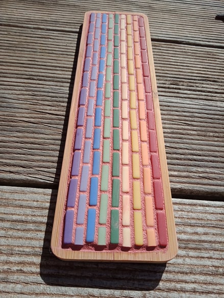 I sell Vibrant Glass Tiles - 152 different colours so far, including the painted tiles which are all 15x15x4mm also. I sell wheeled nippers to cut them. I sell marble tiles,Glossy tess-array-nbows, and Glossy Rainbow's End tiles. Exclusive to Tess-Array.com. I stock polished gemstone slices, "Tess-tubes" of little gemstones for mosaics or jewellery, and a great range of bugle beads too- see photo. Also in stock are Ceramic Tiles and the compound nippers to cut them spatulas, tweezers etc. There is a variety of beads of many materials and bugle beads, so many interesting bits, ball-chain, empty bezels for Jewellery making.